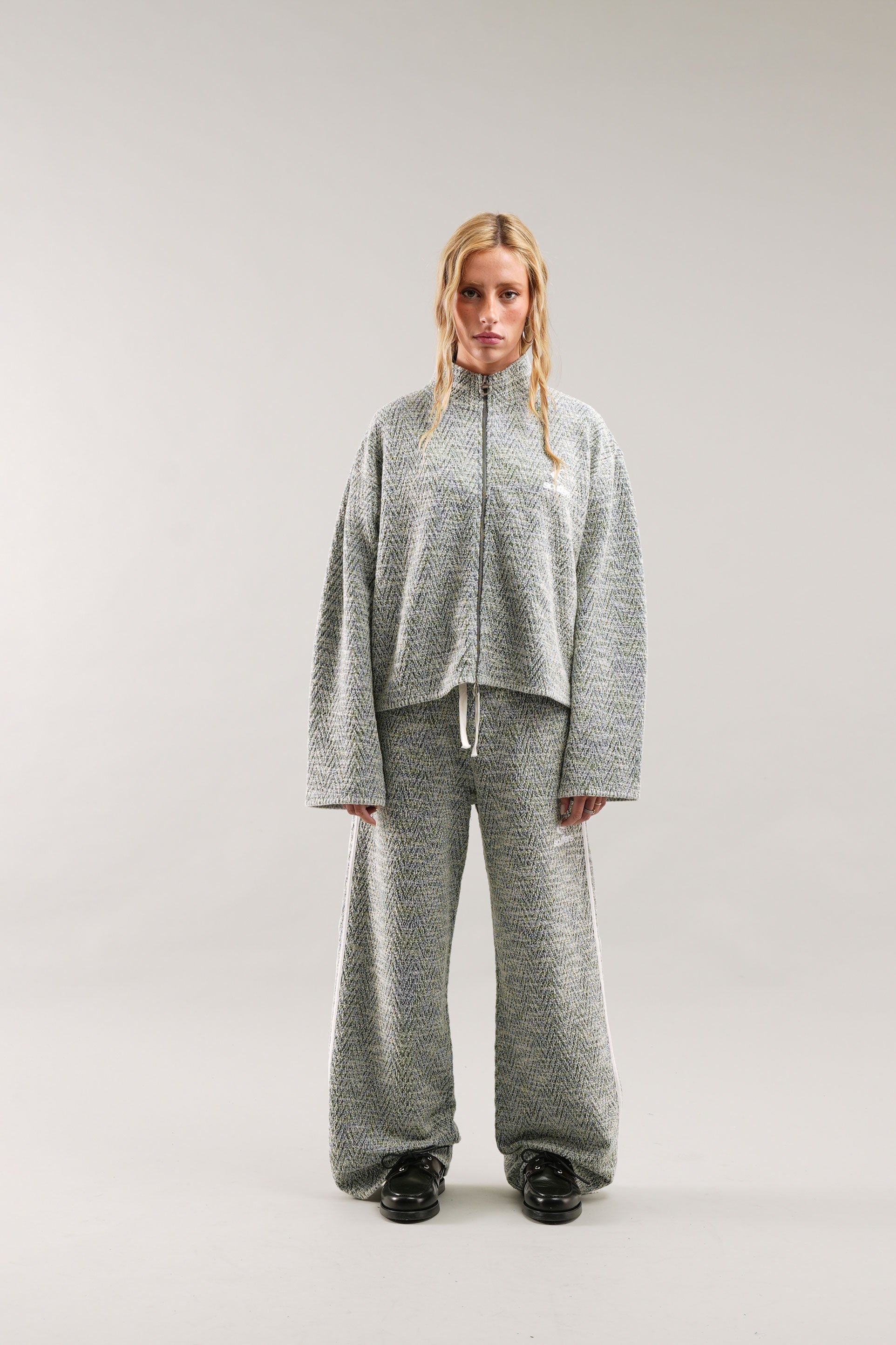 Kurtka zapinana na suwak w jodełkę, wykonana z teksturowanej tkaniny o klasycznym wzorze jodełki. Zapinana na suwak z kółkiem, ze stójką i luźnym krojem. Wyszywane logo Scuffers na piersi. Skrócony krój dla nowoczesnej sylwetki.