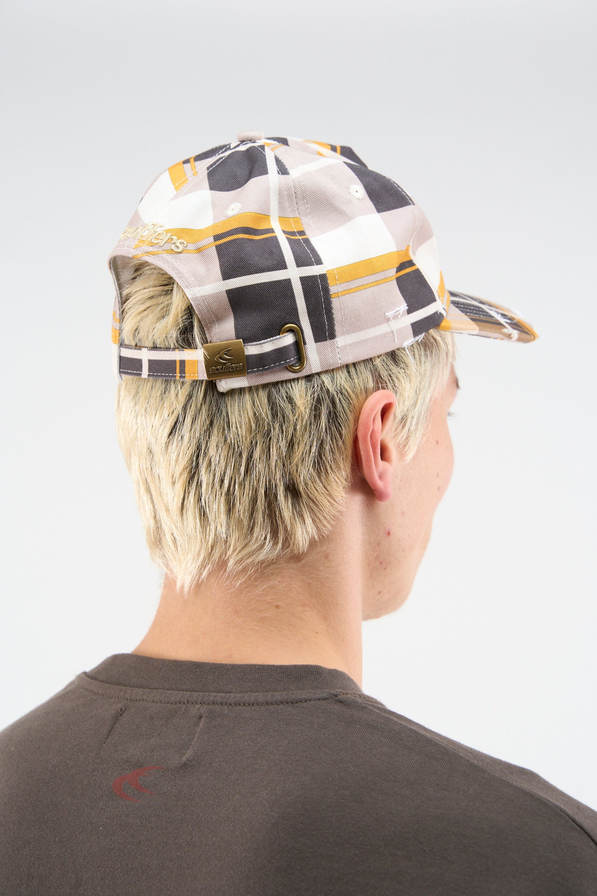 Sprawdza brązową czapkę