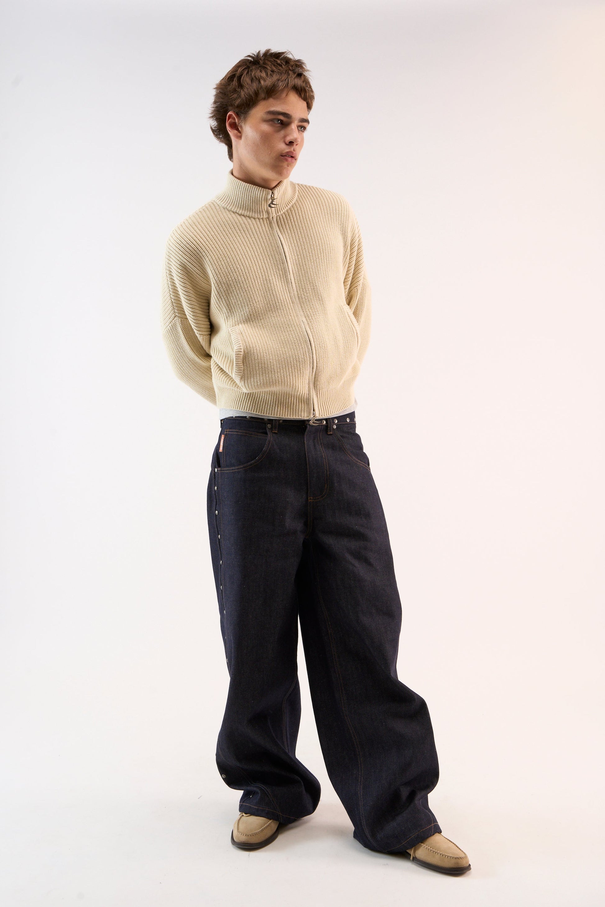 Delore Ecru Knit Zipper