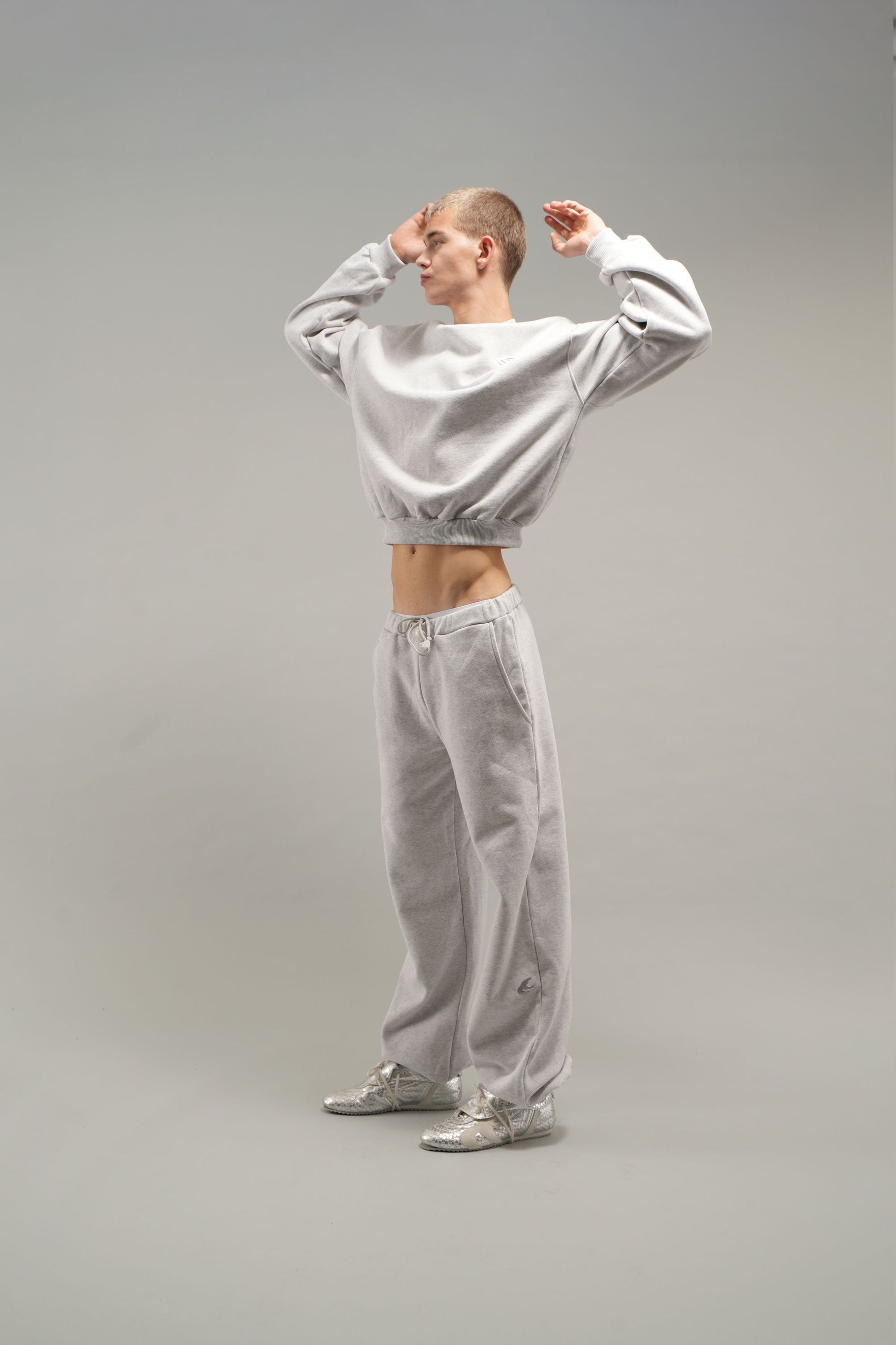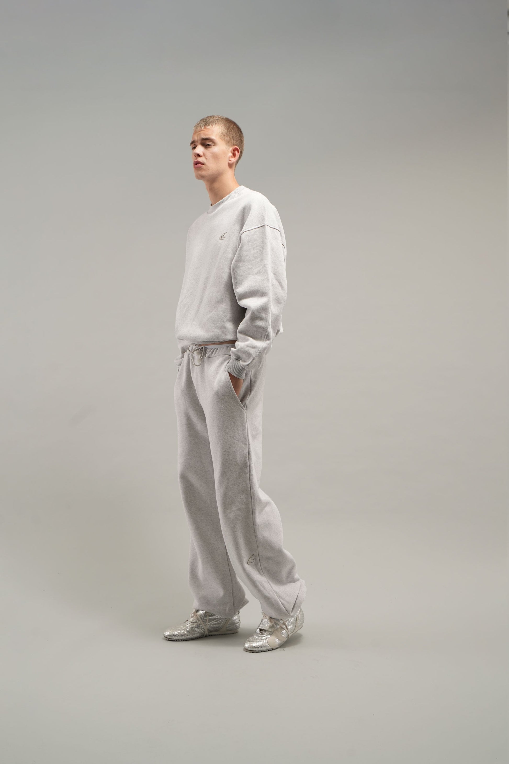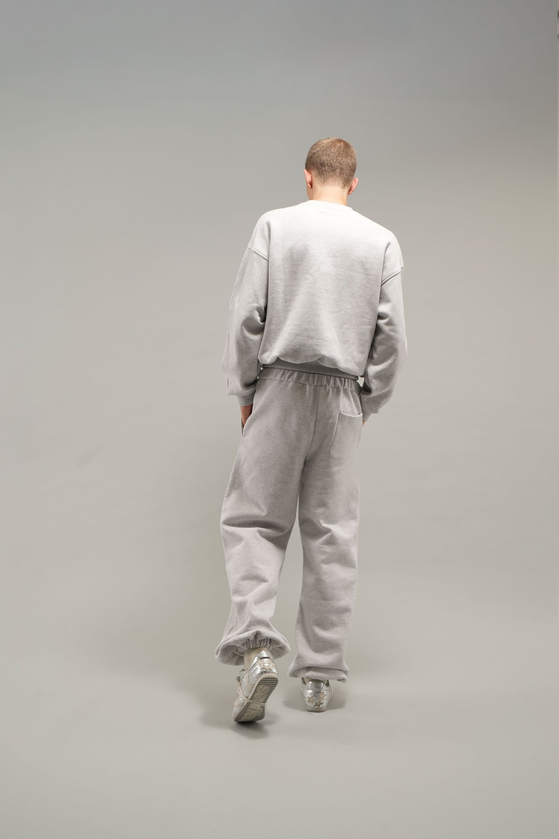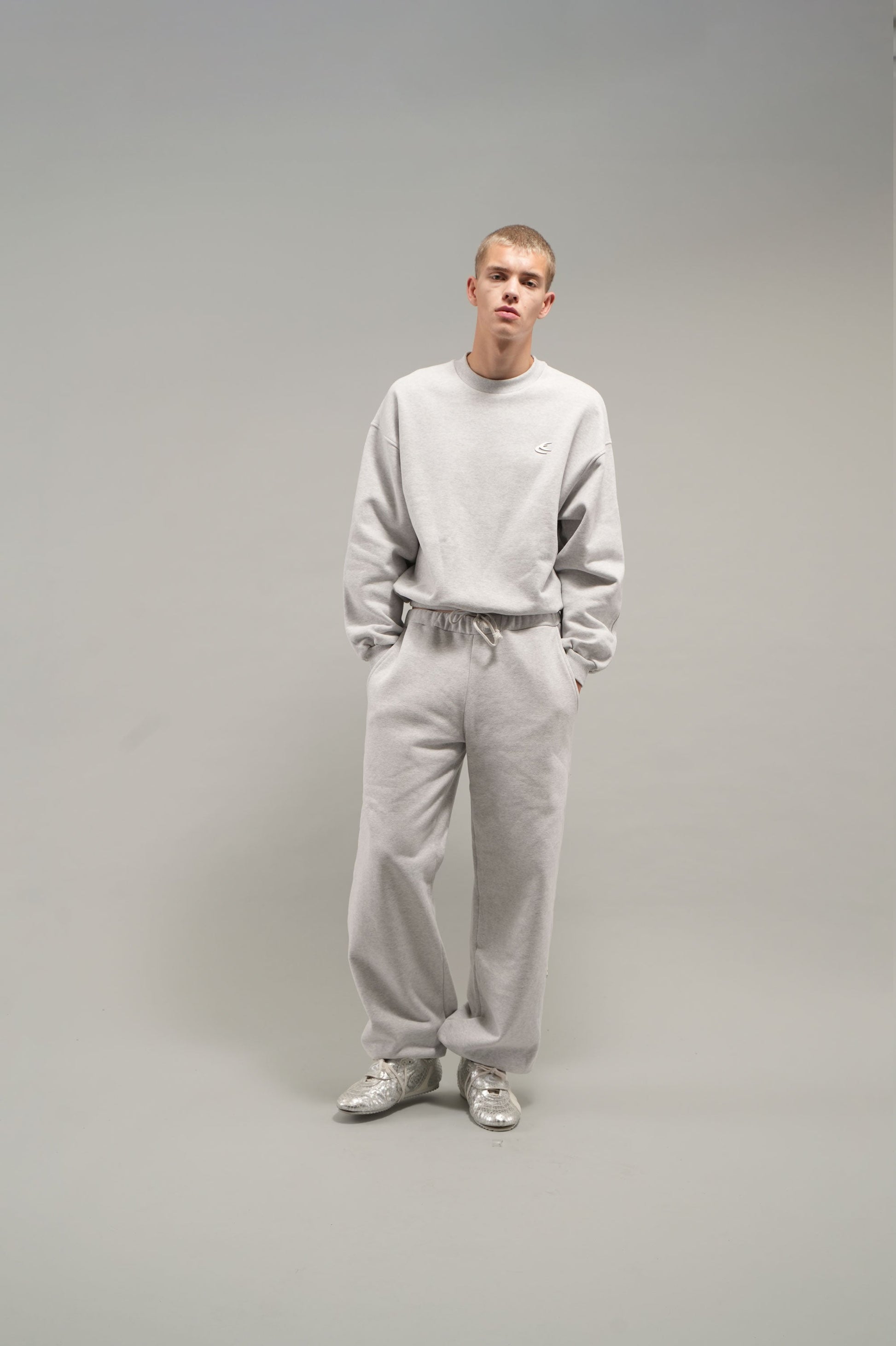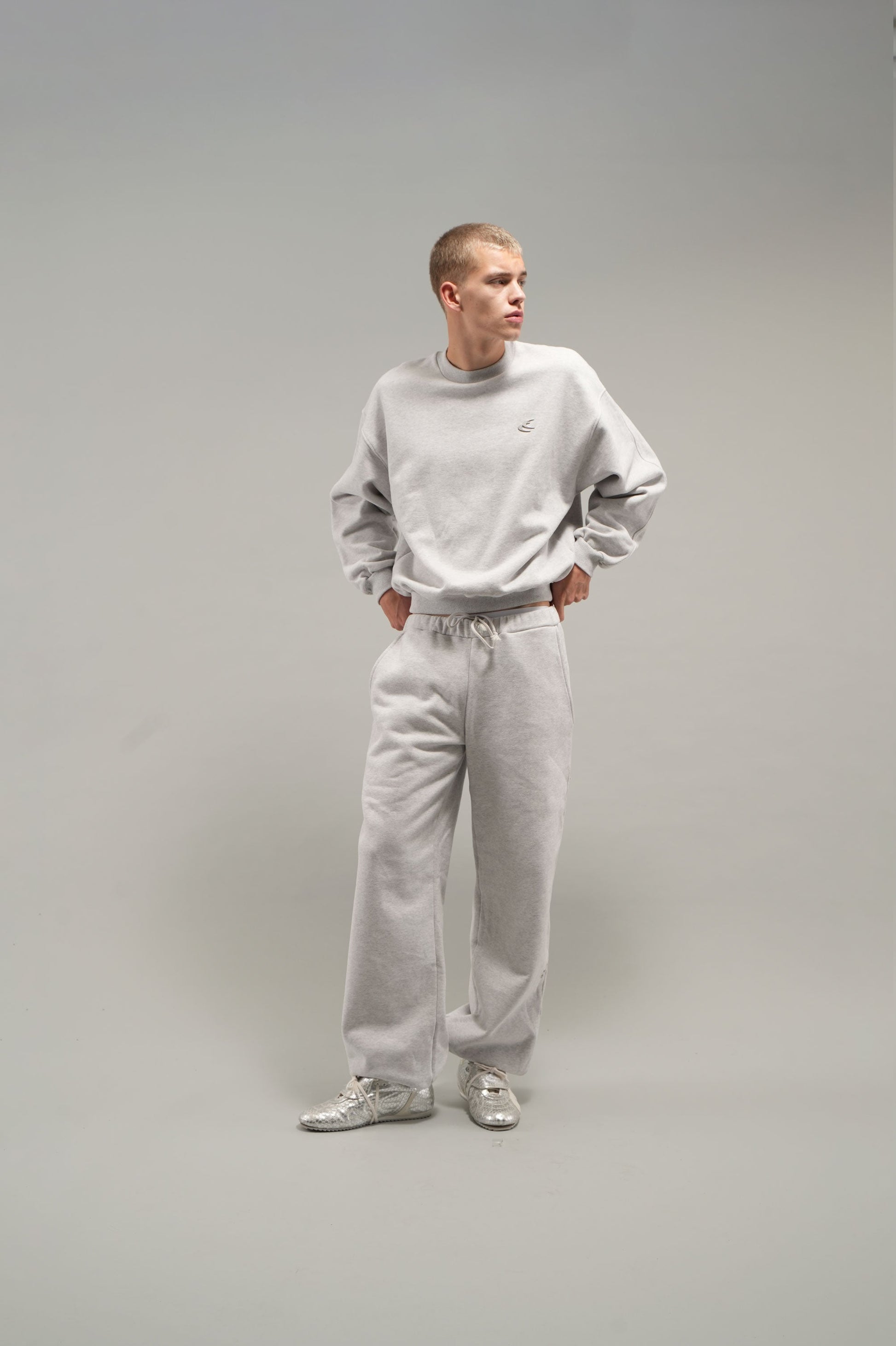 Codzienny szary melanżowy sweter z okrągłym dekoltem
