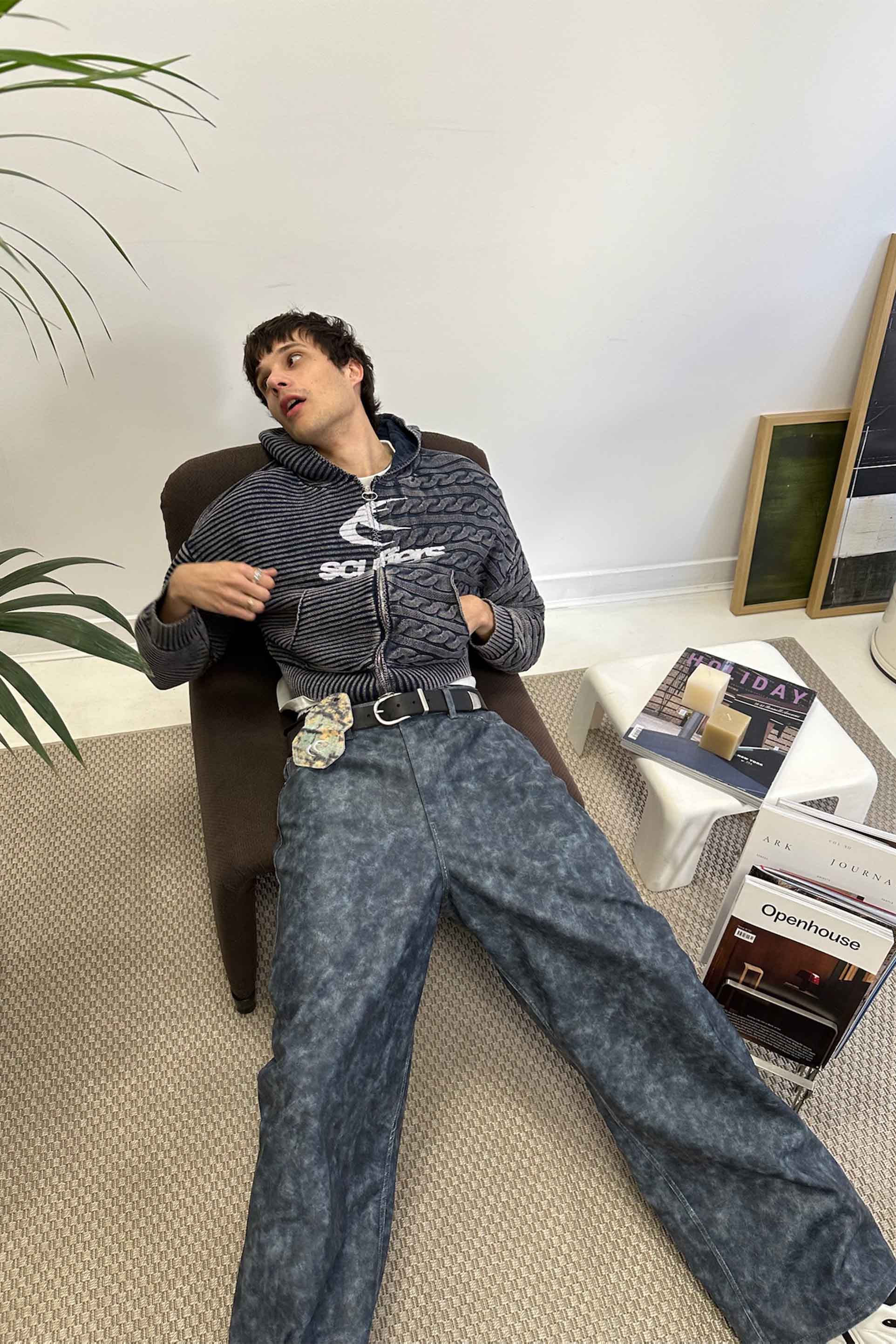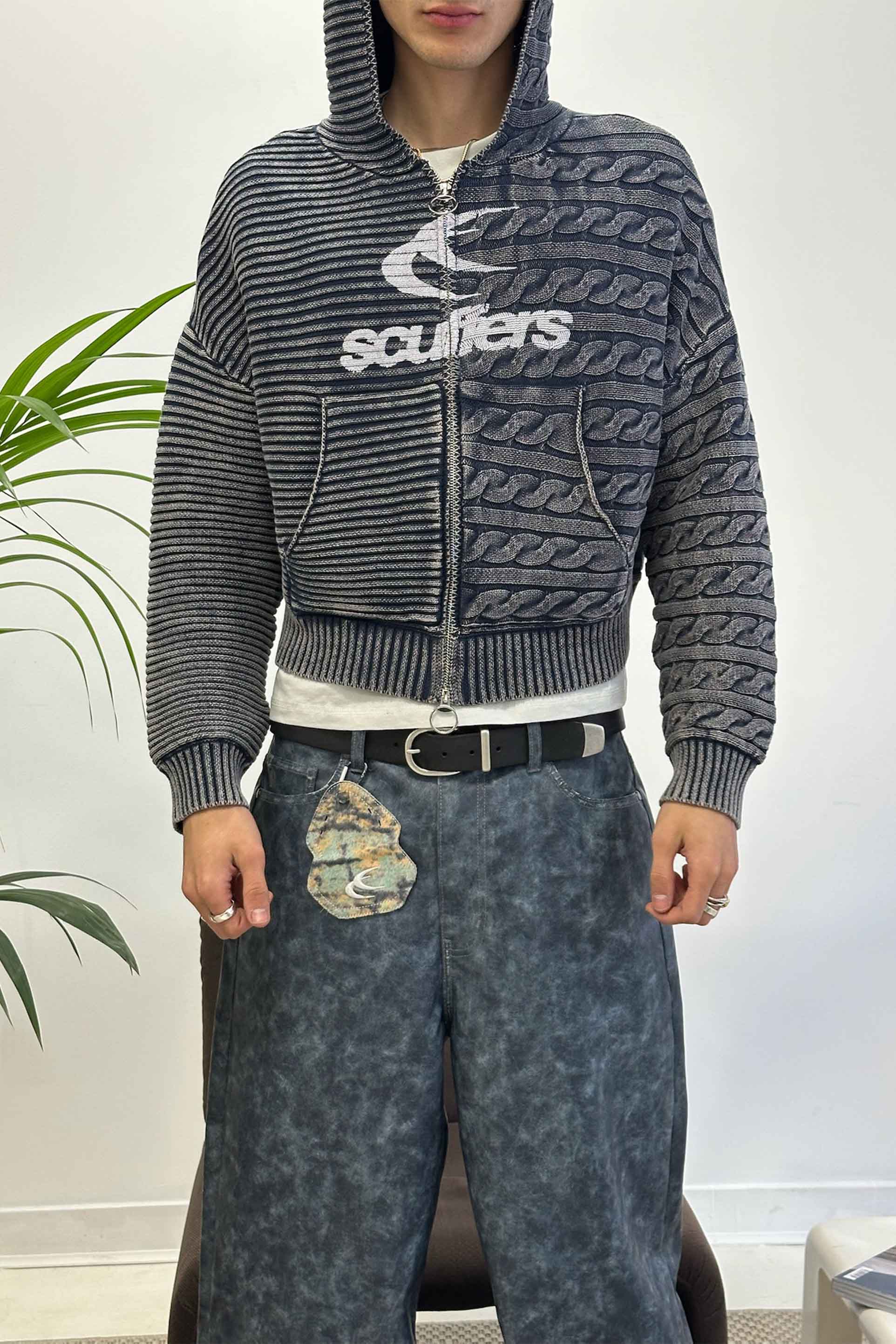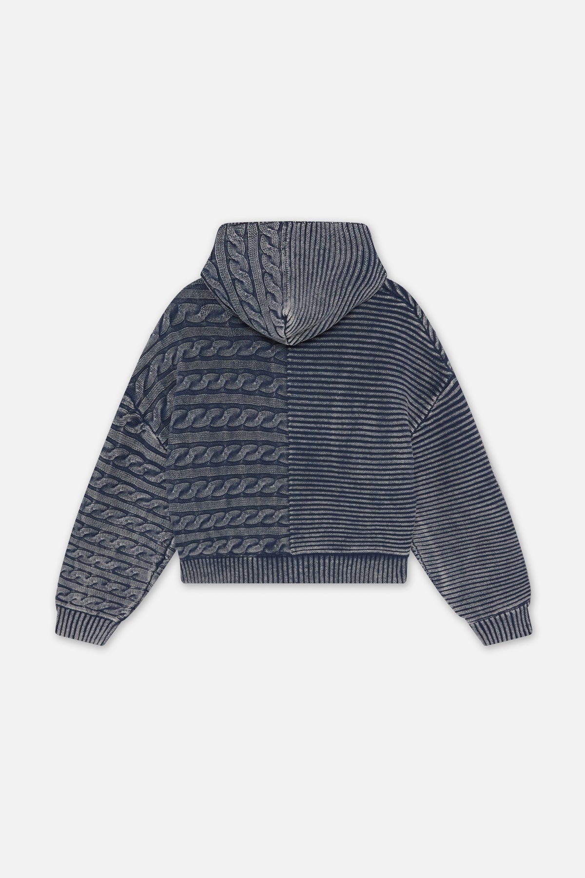 Teksturowana, zapinana na suwak dzianina w kolorze granatowym z wypukłym splotem warkoczowym i ściągaczami. Z białym logo Scuffers z przodu, zamkiem błyskawicznym na całej długości z kółkiem i luźnym kapturem. Z przodu kieszenie kangurki oraz ściągacze przy mankietach i u dołu dla idealnego dopasowania. Wykonana z miękkiej dzianiny zapewniającej ciepło i wygodę.