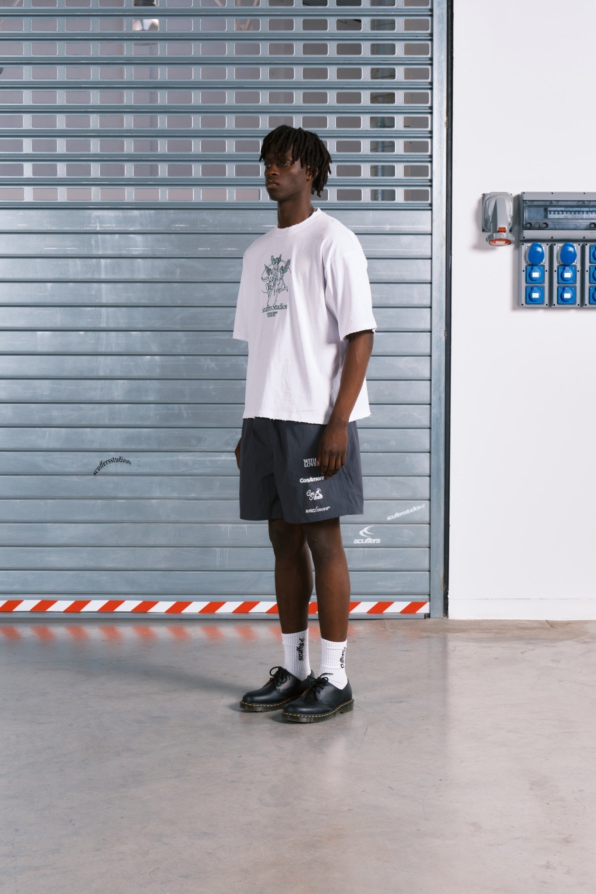 Wykonane w 100% z nylonu. Elastyczny pas i ukryte sznurki ściągające. Z białym napisem Love, Con Amore, Con Amor, Avec Amour po lewej stronie.