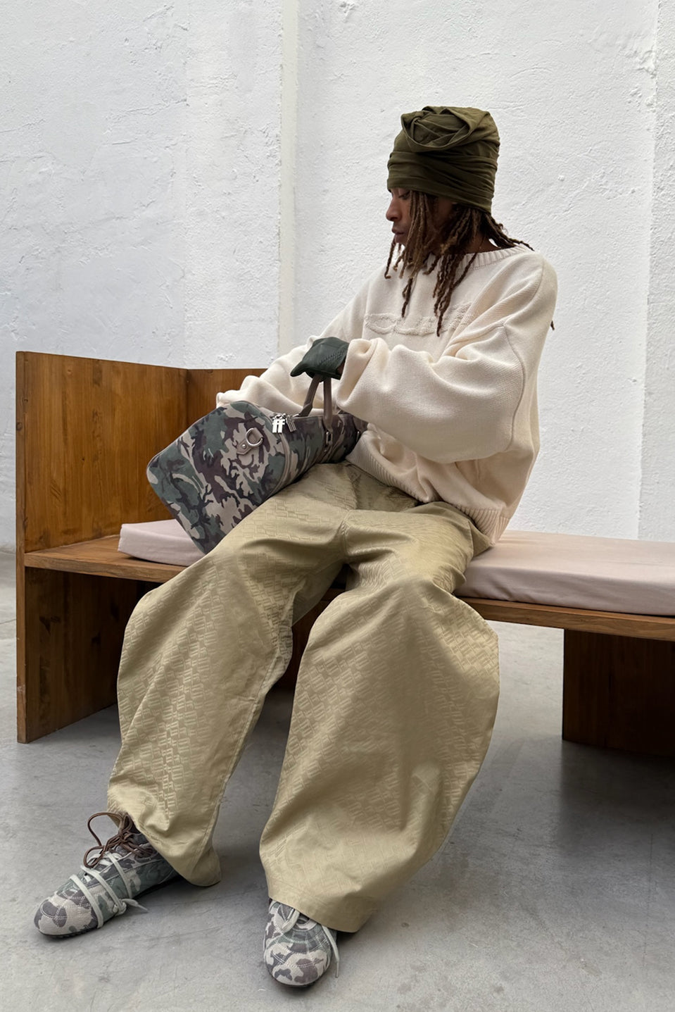 Spodnie w kolorze beżowym z monogramem