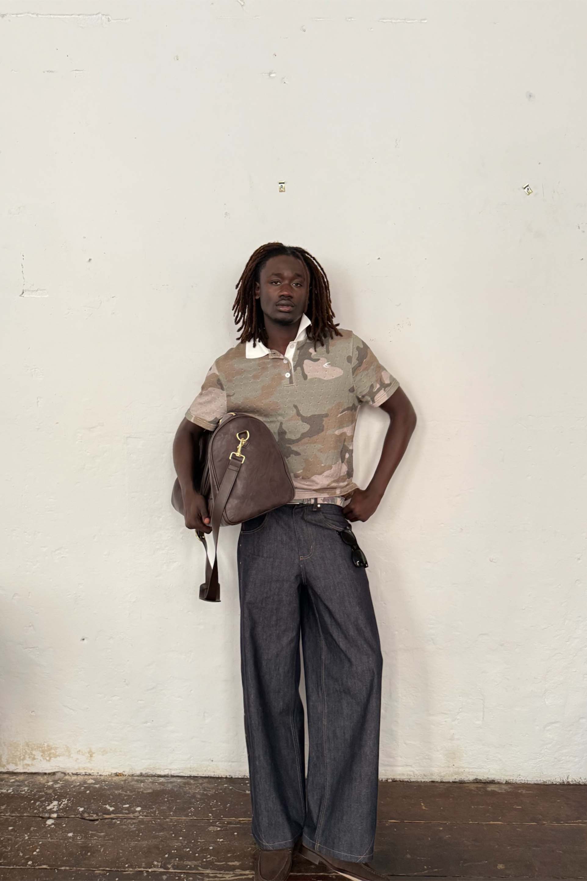 Ażurowa koszulka polo w kamuflażu