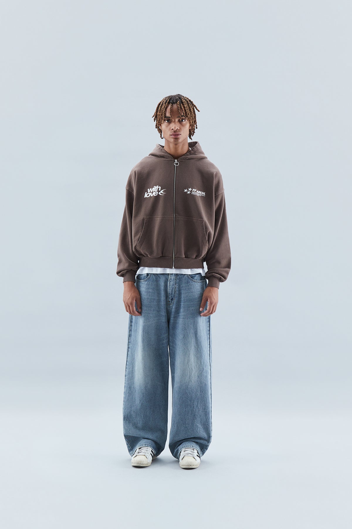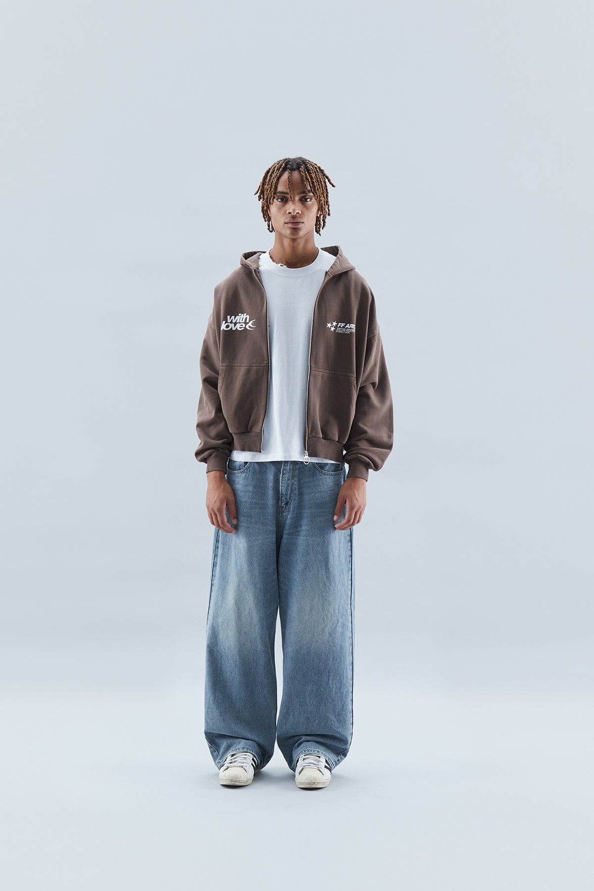 Bluza z kapturem i zamkiem błyskawicznym w kolorze czekoladowym