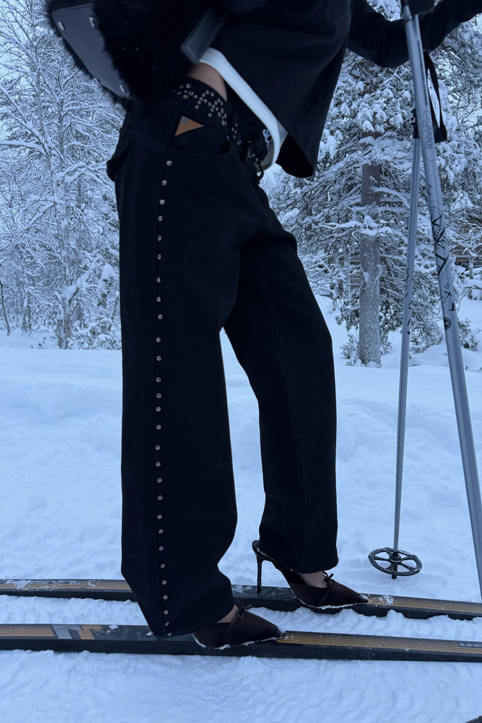 Szycie spodni w ciemne paski