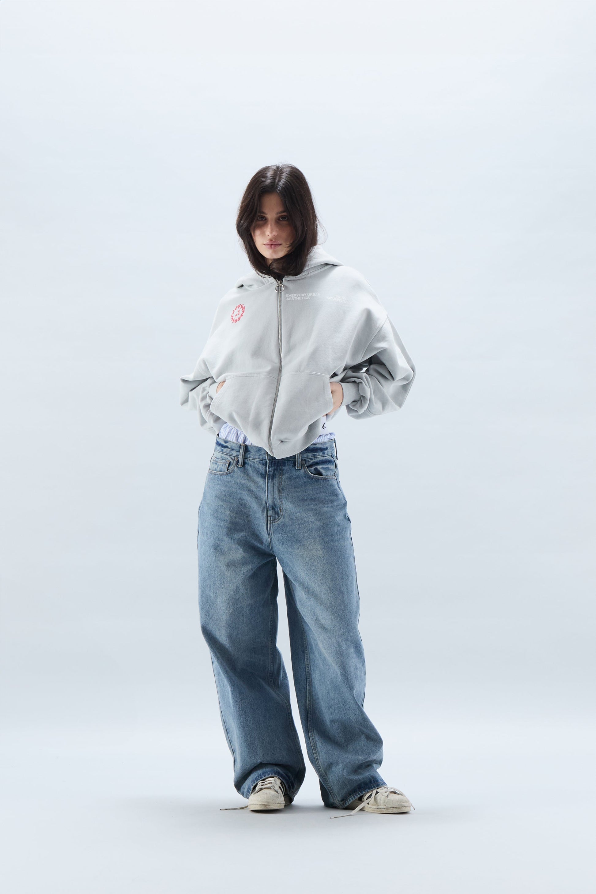 Bluza z kapturem S66S w kolorze szarym z zamkiem błyskawicznym