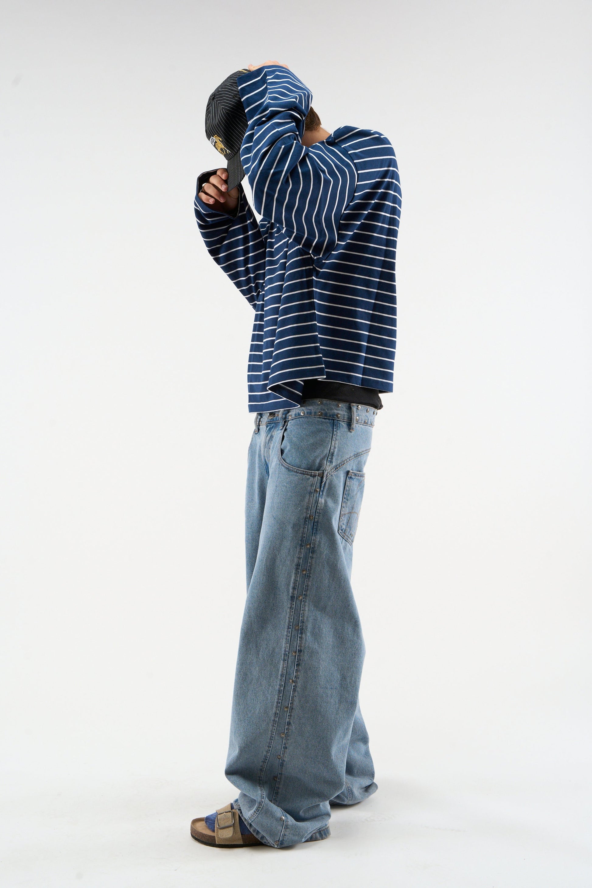 Szycie spodni w ciemne paski