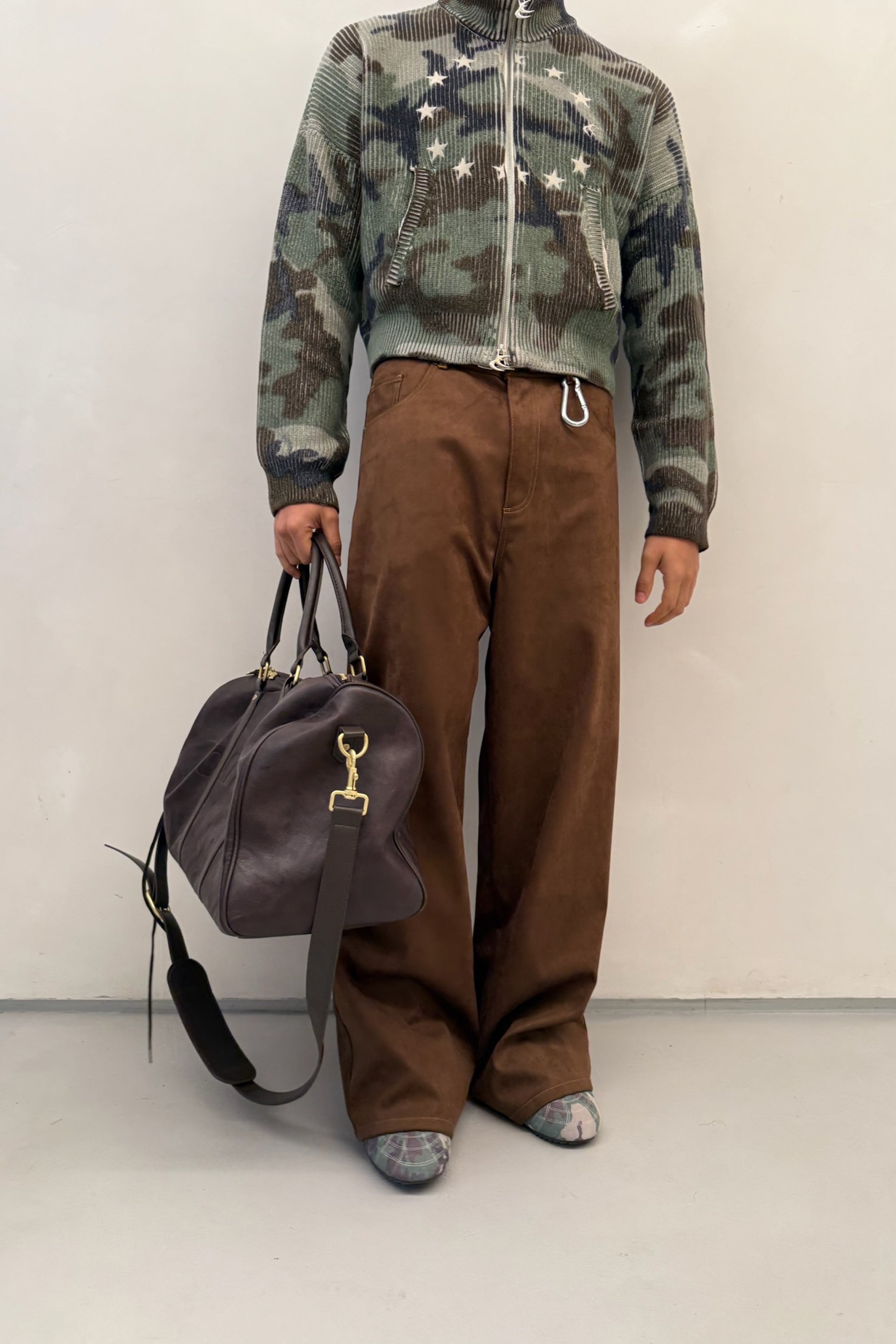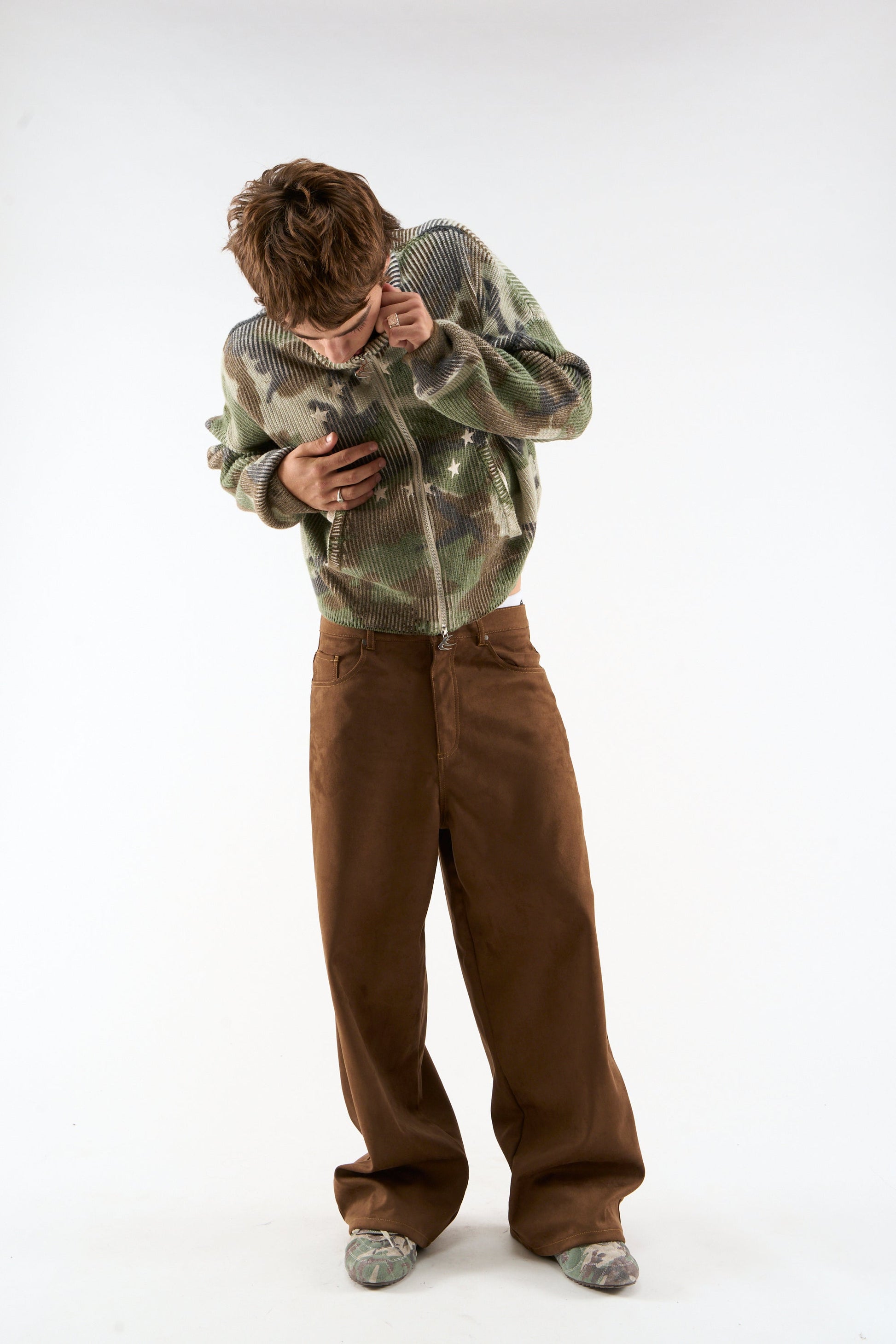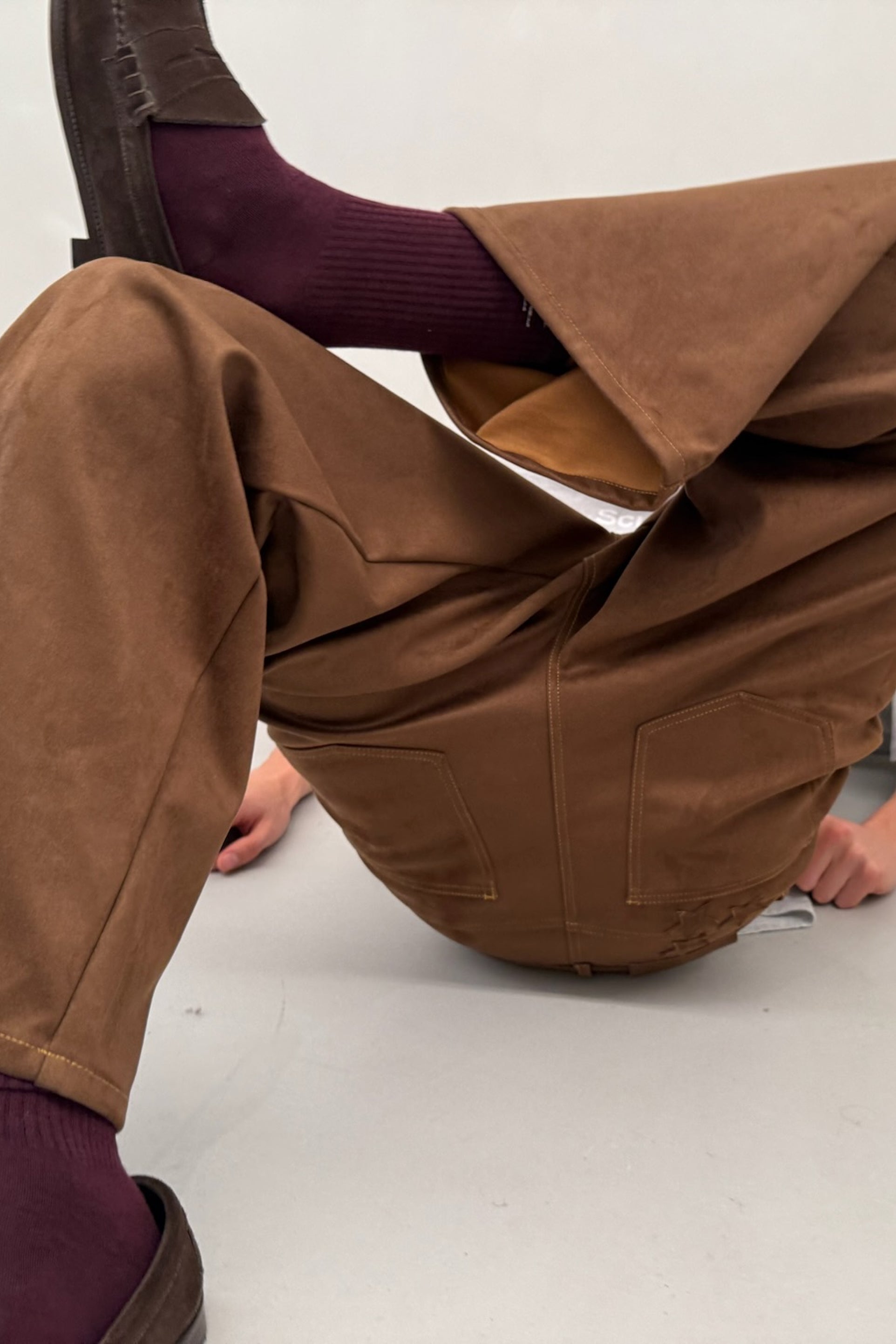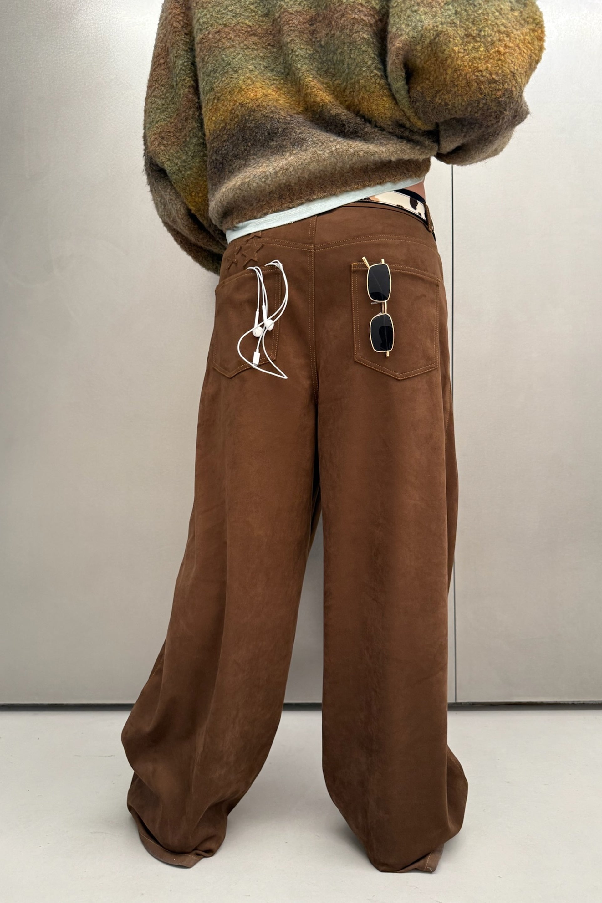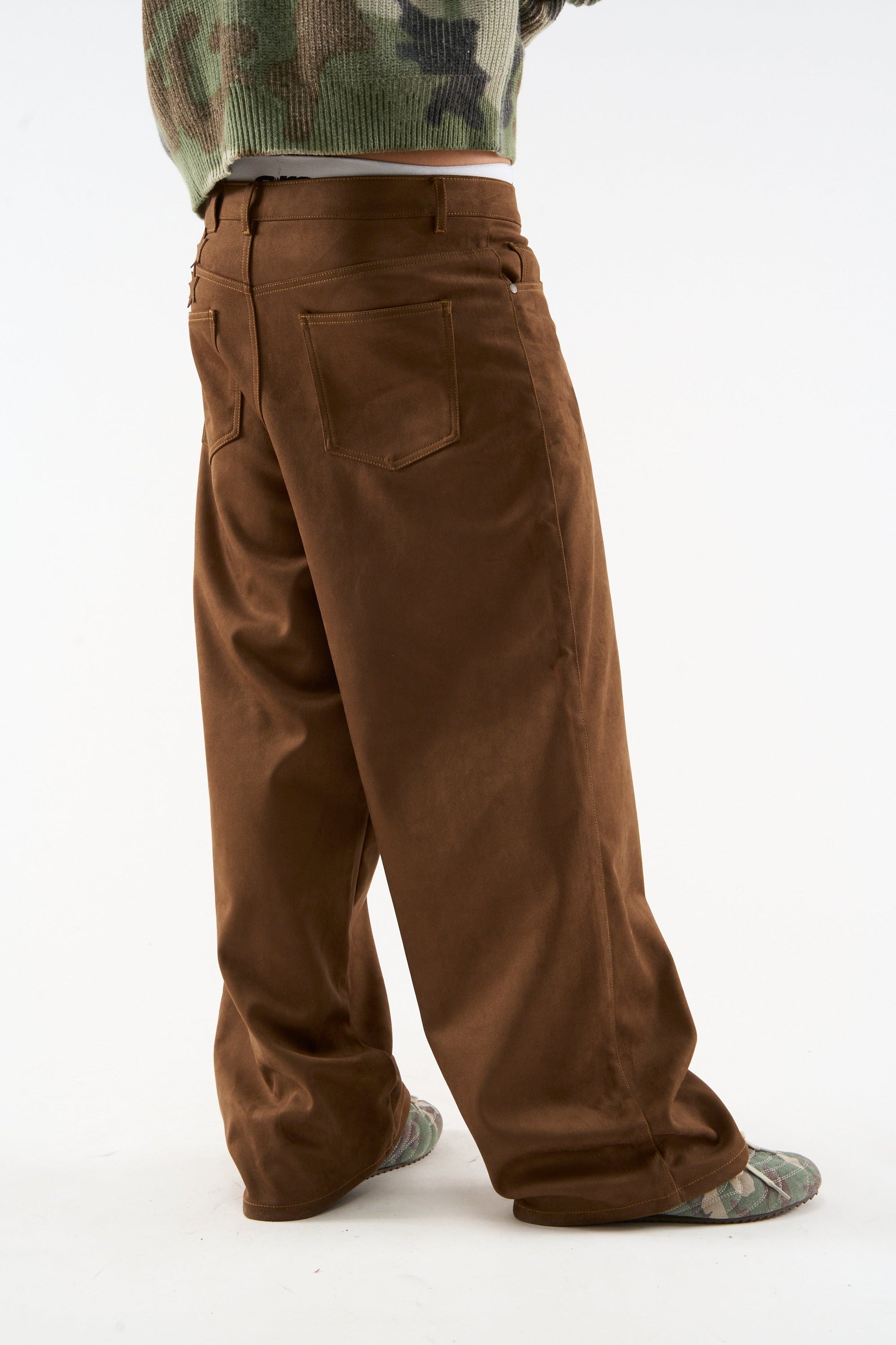 Zamszowe ciemnobrązowe spodnie Jumbo