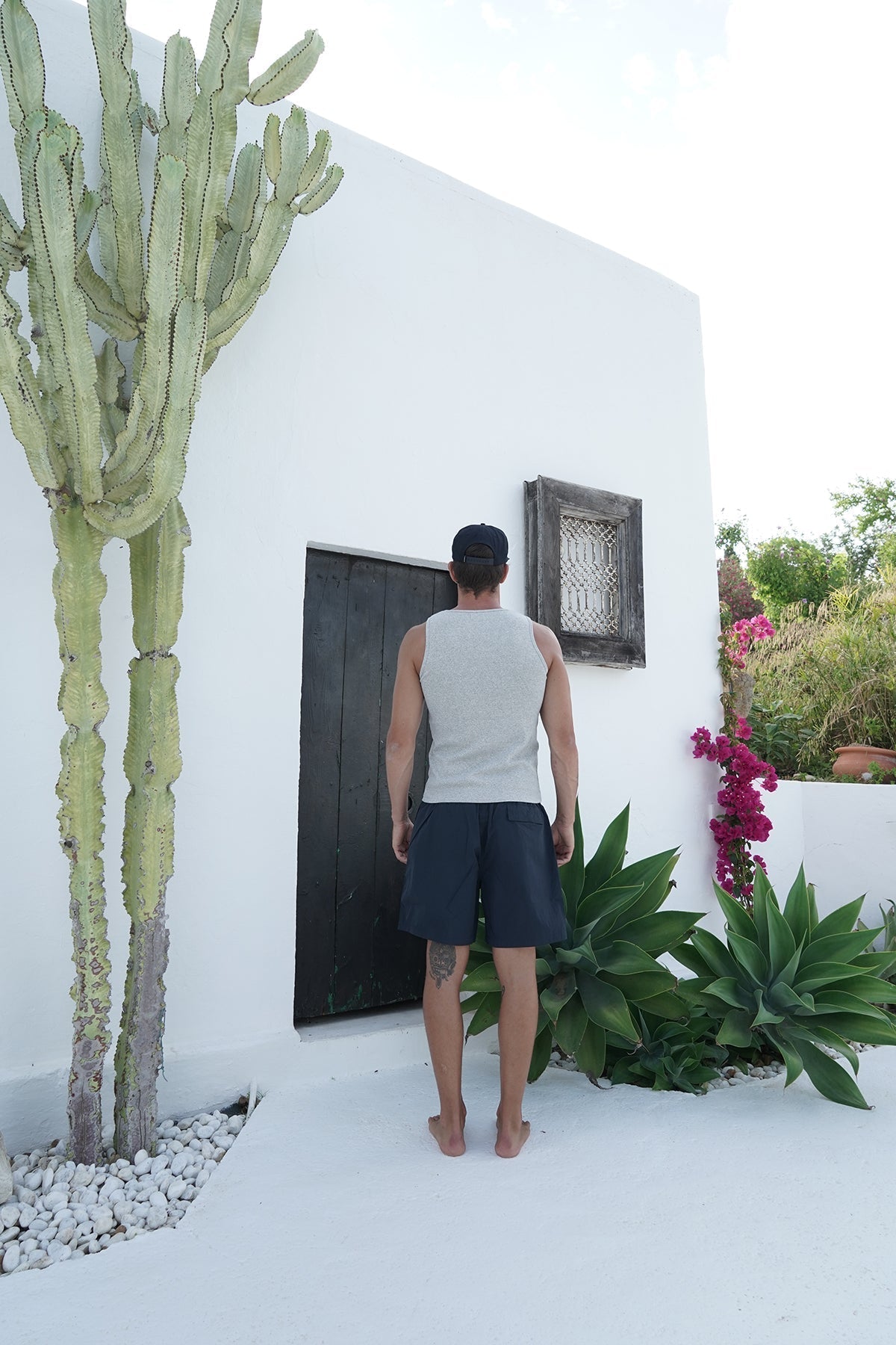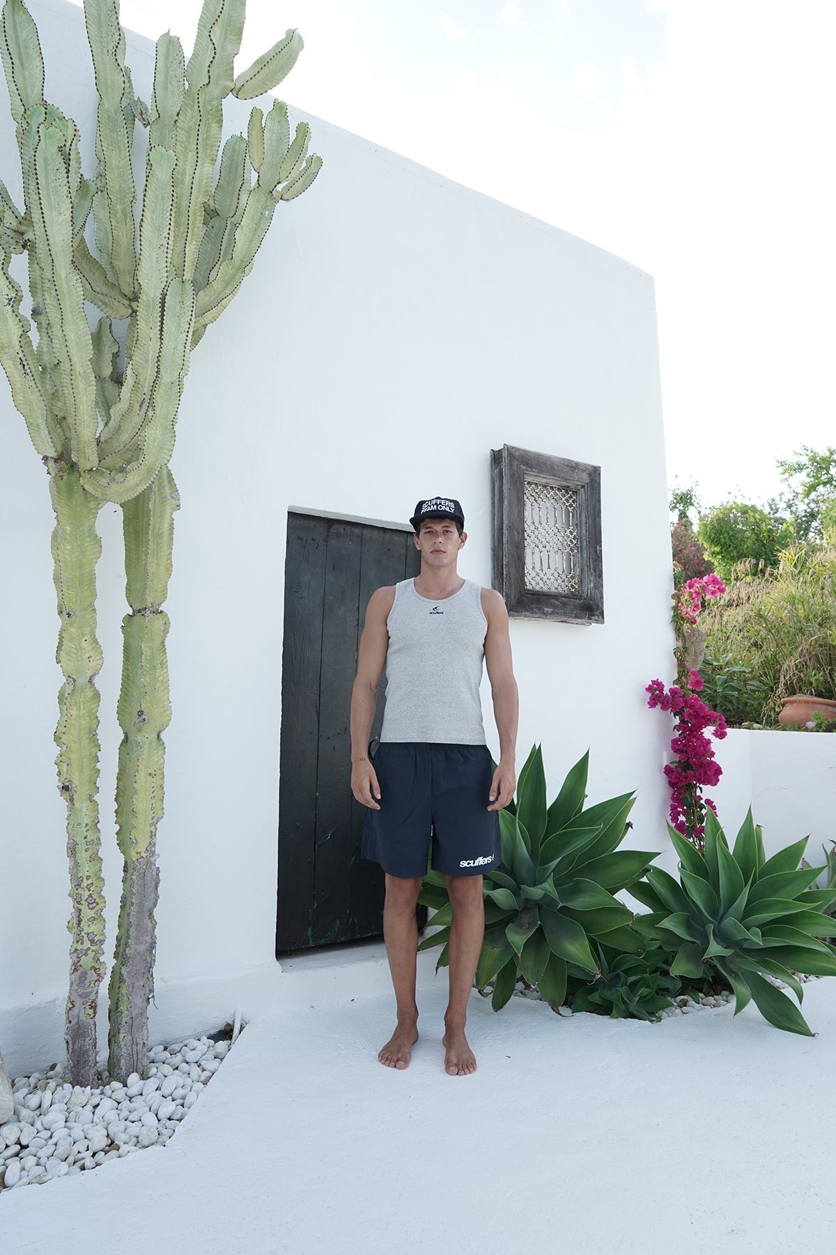 Jasnoszary, prążkowany top na ramiączkach. Pod kołnierzykiem nadrukowano czarne „Scuffers” i podwójne logo.